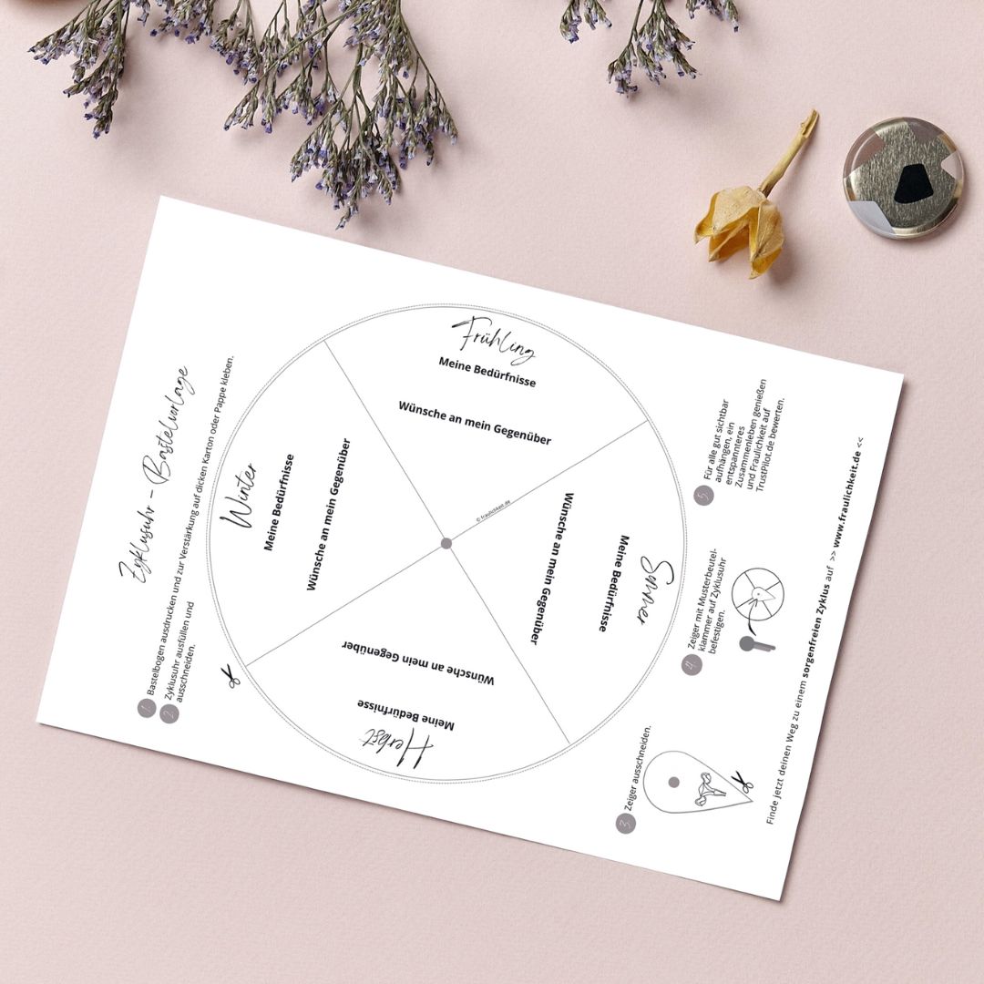 Nach dem Kauf erhältst du die Bastelvorlage der Zyklusuhr als PDF zum Herunterladen. Aus Sicherheitsgründen läuft der Link nach 30 Tagen ab und ist der Download auf 3 Vorgänge begrenzt.
